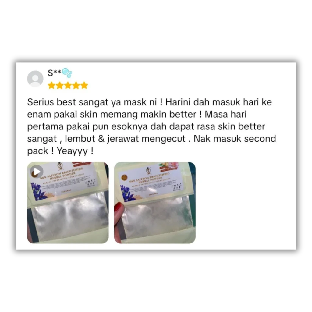 Lepas guna Face Mask Saffron Herba ni, seri wajah makin terserlah dan nampak lebih segar!