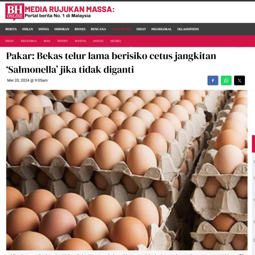 Telur dalam bekas lama mudah tercemar oleh Salmonella, sangat bahaya untuk keluarga